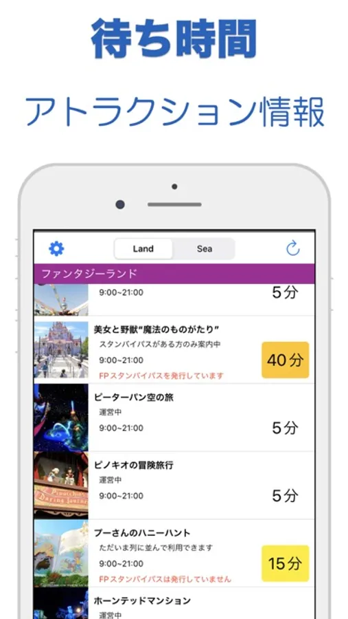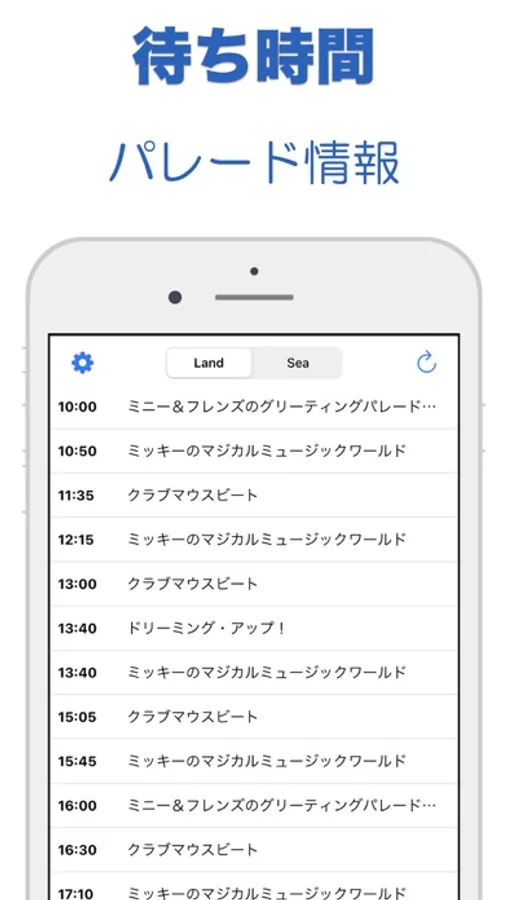 東京ディズニーランド、東京ディズニーシーの待ち時間やショースケジュール、レストラン情報を分かりやすく表示します。