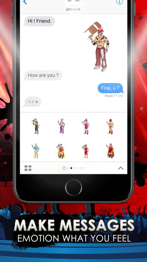 • Wrestlers Emojis’s digital stickers can be received and viewed by anyone. Illustrations are high resolution and look great no matter where you share them. You can even post them to social media sites like Instagram, Facebook, and Snapchat.