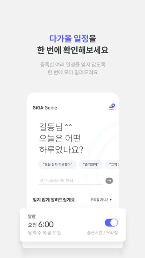 - 아침 알람이 필요 할 땐 "내일 아침 6시 알람 설정해줘"