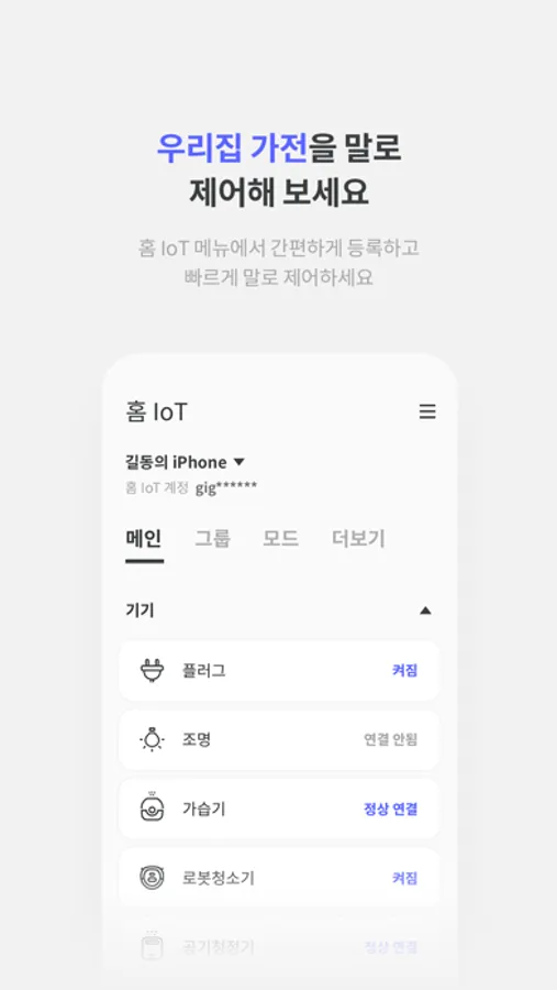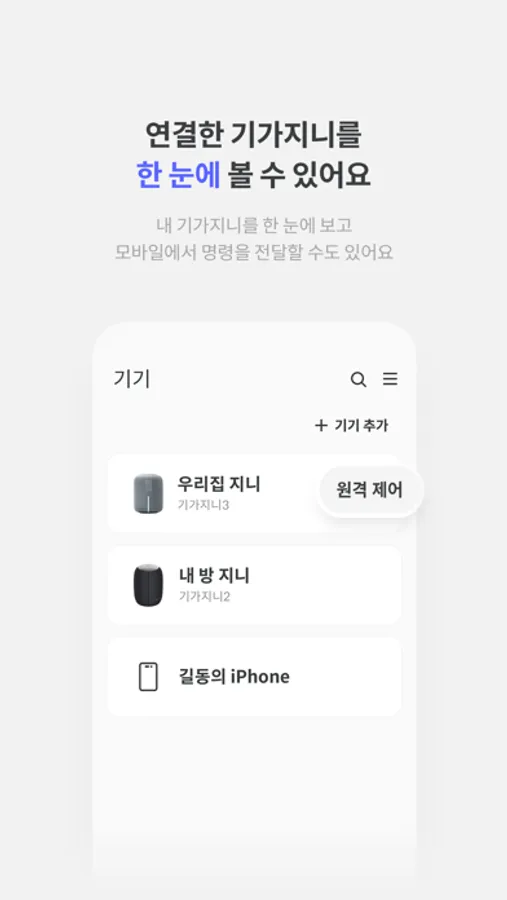 기가지니 단말 라인업의 다양한 기기를 연결하고 관리 할 수 있습니다.