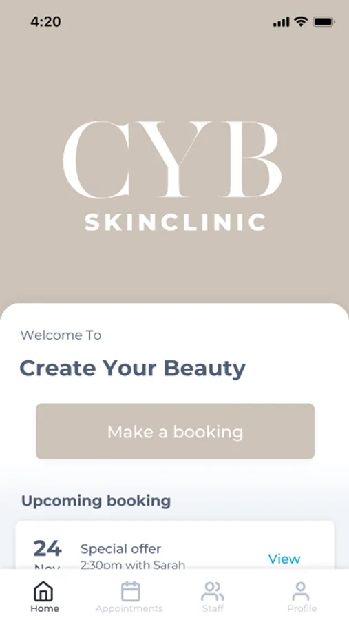 The Create Your Beauty app makes booking your appointments and managing your loyalty points even easier. You're just a few taps away from feeling good and looking great!