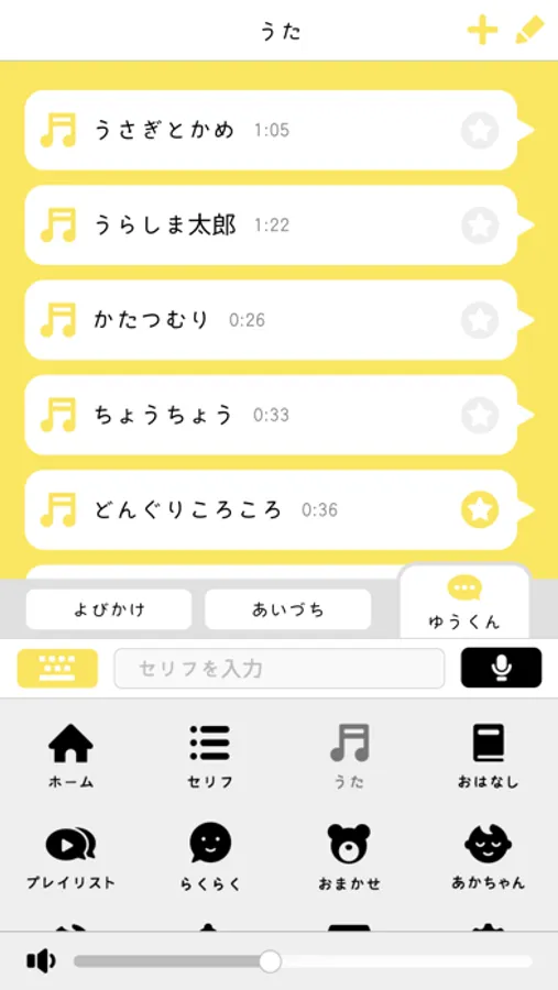 ペチャットに歌わせたい歌を、一覧から選んだり追加したりできます。