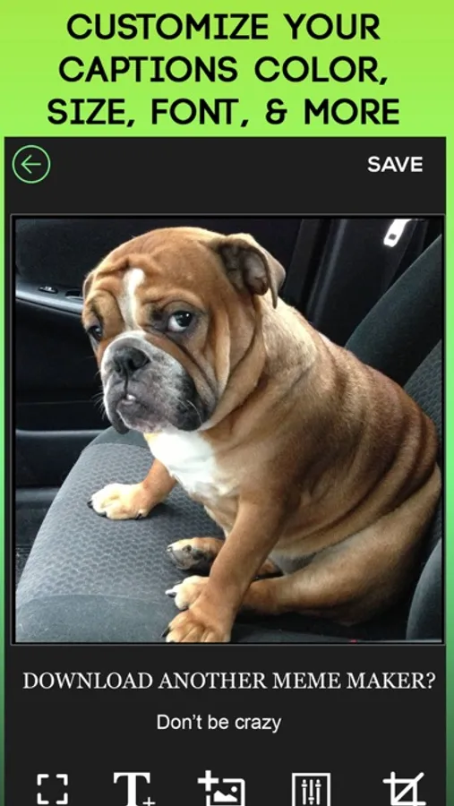 Memes can also be saved to your gallery and shared on email and text as well.