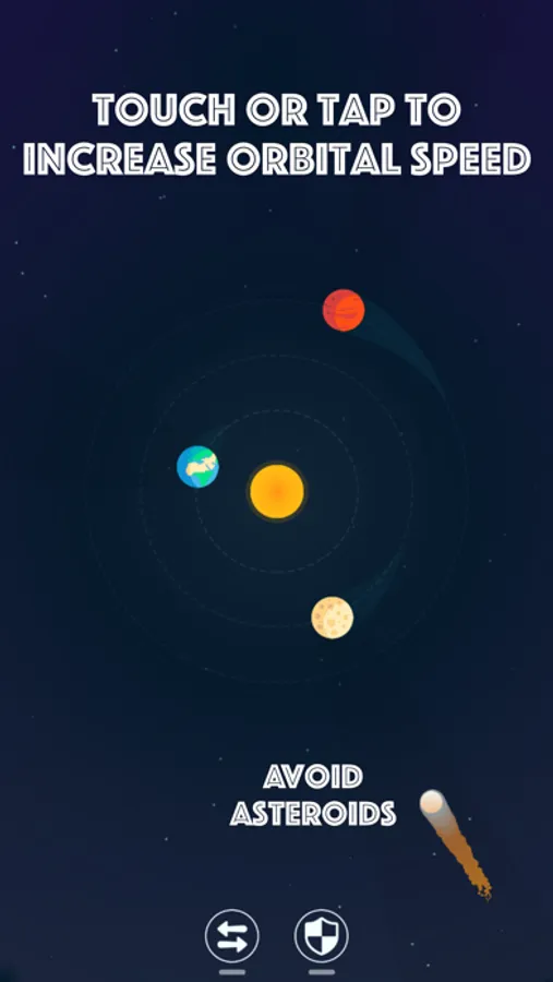 • Simple Controls: touch or tap to increase the speed that your planets orbit the sun, strategically dodging incoming asteroids.