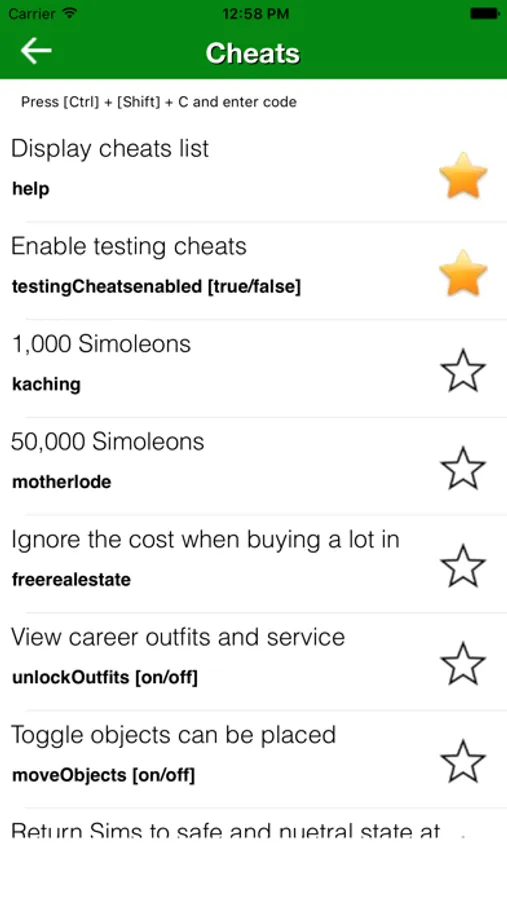 You can easily add the selected codes to FAVOURITES, which will make the most important codes handy.