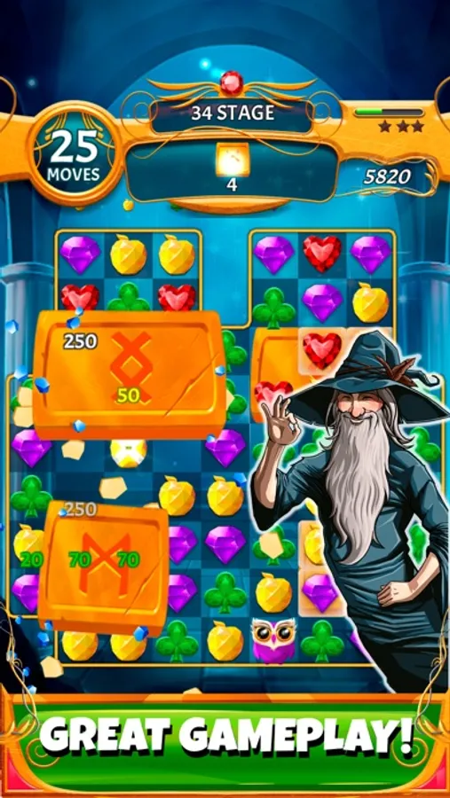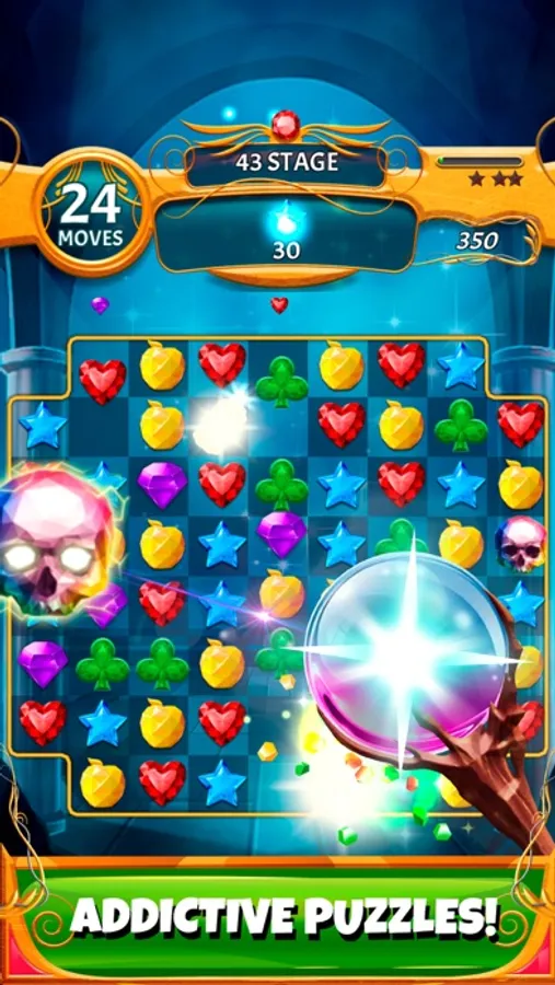 This intriguing puzzle adventure will catch your attention and satisfy your thirst for fun at once! Discover magical combos by transforming jewels into exploding gems. The gems will help you to pass different levels of the quest and walk you through your mystical path! Thrilling surprises and breathtaking mysteries are waiting for you in this magical world of puzzles!