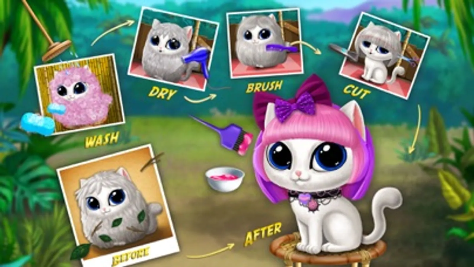 · Clean up baby kitten from twigs and tree leaves, shave her white fur and dye it pink!