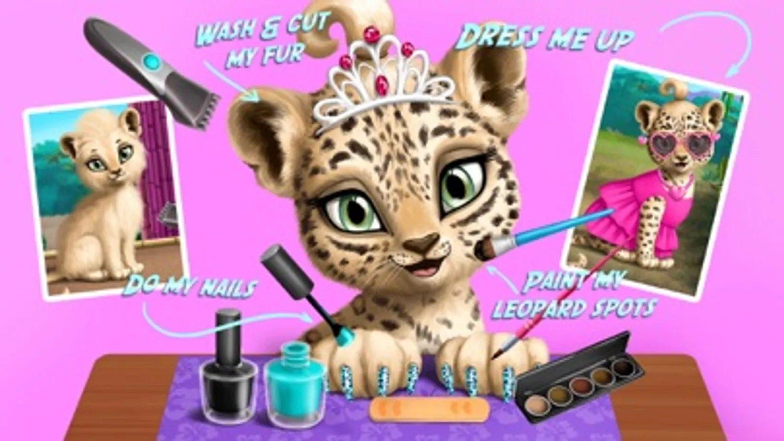 Play with 9 super cute jungle animals and choose who to style first - baby and mommy panda, baby and mommy bear, baby and mommy giraffe, baby and mommy leopard or baby kitten!