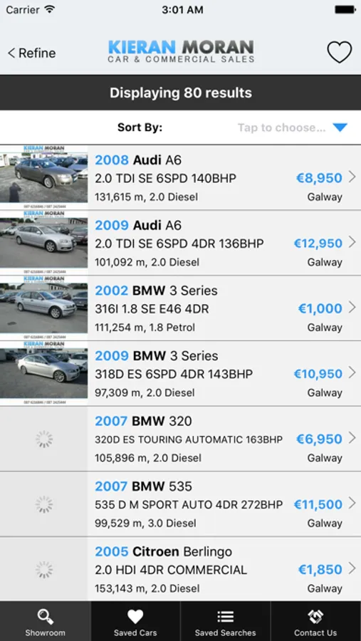 Search our used cars showroom with the free Kieran Moran Car Sales app for iPhone and iPad.