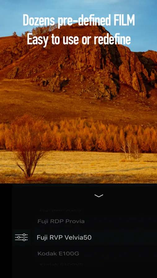 2 Simple: Select one FILM, so snap a full size photo directly with professional colors and light directly!