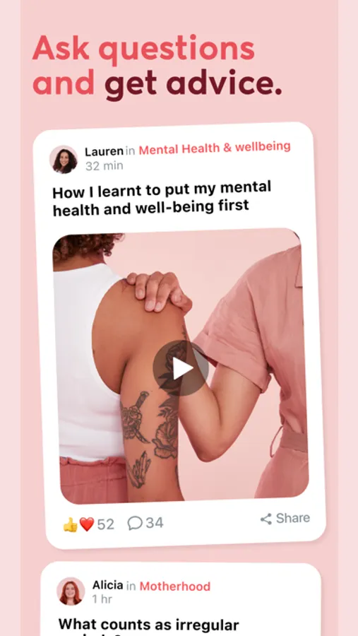 - Share: Ask questions, search advice and share stories across meaningful topics