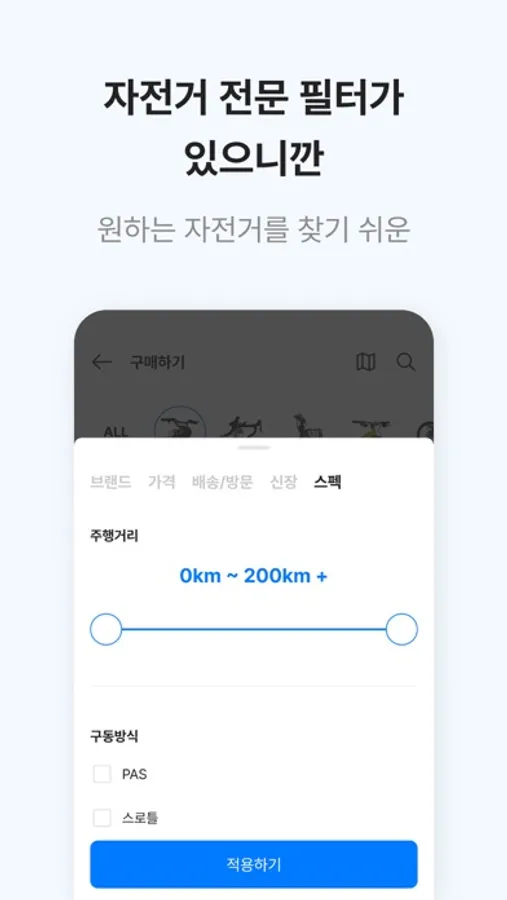 내게 맞는 자전거를 정밀하게 찾고 싶다면, ‘라이클’의 필터 기능을 이용해보세요. 원하는 자전거 스펙만 선택해서 내게 딱 맞는 자전거를 찾아보세요.