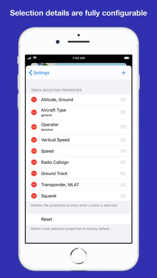 • Mail track details feature, send an email containing an aircraft's details along with a map snapshot, fully configurable