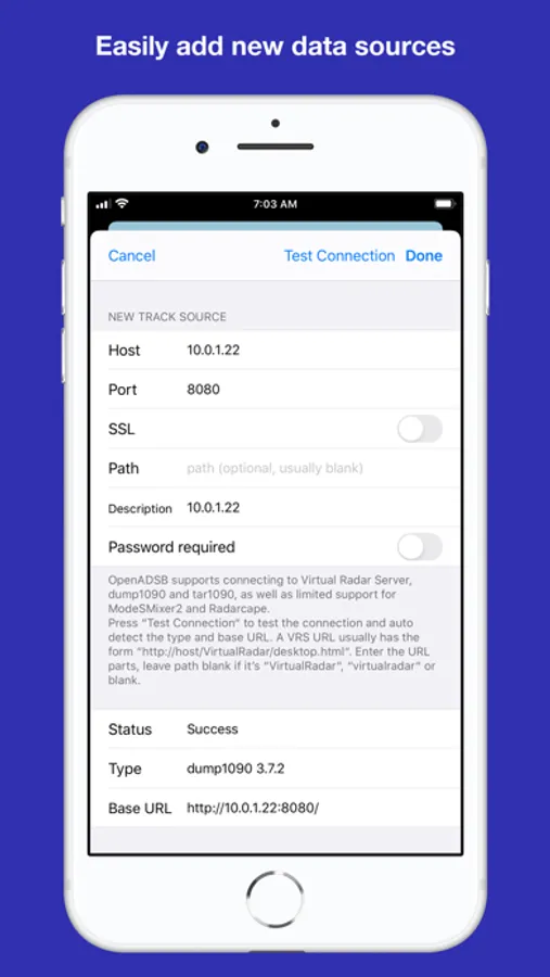 If you love tracking aircraft using dump1090, tar1090 or Virtual Radar Server then you'll love OpenADSB. OpenADSB is a full featured high performance aircraft tracker display app that connects to a variety of backend air traffic sources. Enjoy OpenADSB's smooth native iOS experience instead of using the web interface.