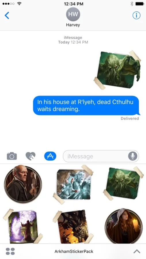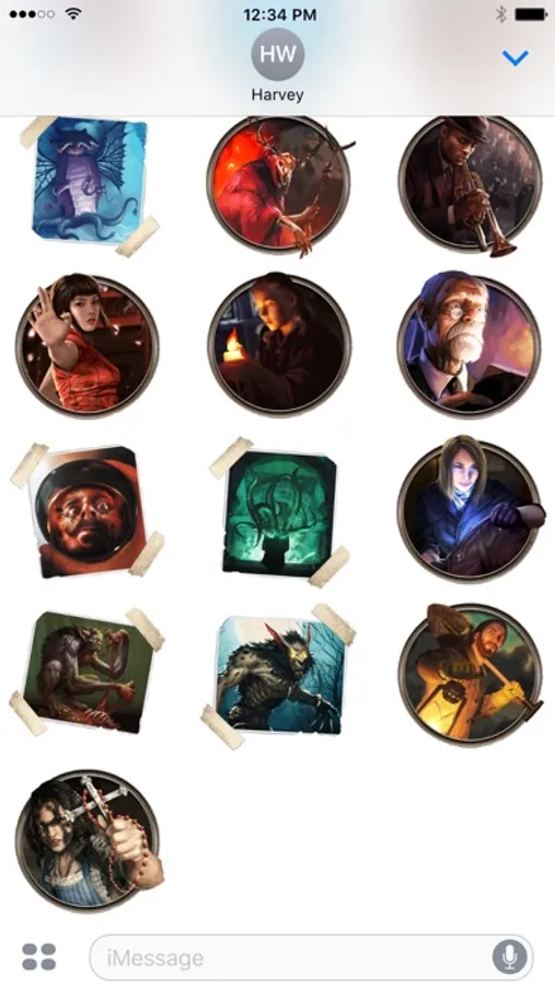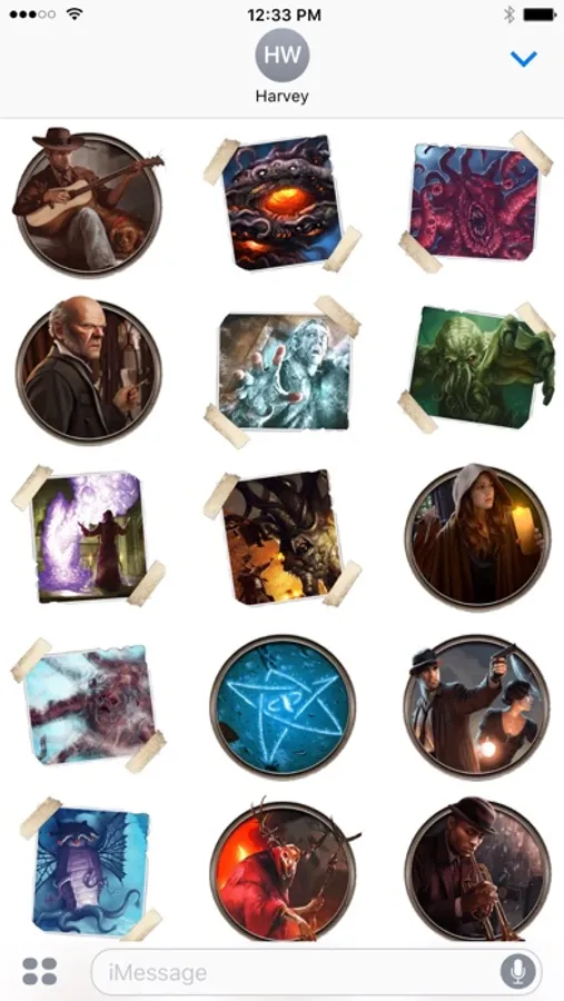 Bring a world of horror and investigation to your messages with the Arkham Horror sticker pack! Threaten your friends with sanity-melting, eldritch creatures, or declare your sleuthing prowess with a favorite investigator. Each animated sticker brings something new to your texts and photos!