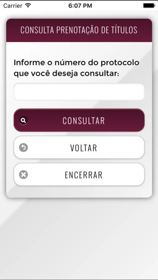 - Consulta ao status de Protocolos de Títulos que foram prenotados em nosso atendimento. Informamos se o Título foi entregue, está registrado ou exame e respectivas datas. Também informamos se há valor à pagar/restituir, qual é esse valor e se o Título está com exigência, nesse caso mostramos também o texto da Nota Devolutiva. Em todos os casos os números das matrículas correspondentes são disponibilizados.