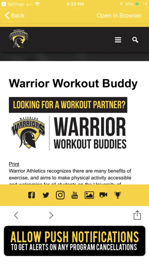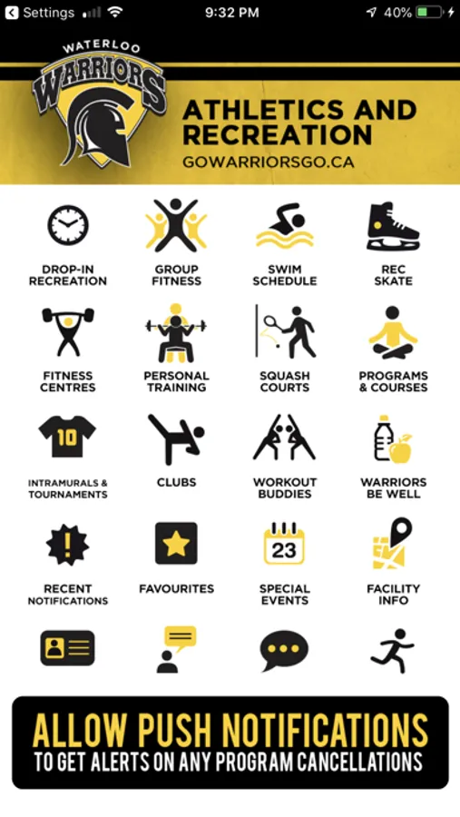 Warrior Rec is designed to provide users of theDepartment of Athletics and Recreation with up-to-date information about whatis happening in the Physical Activities Complex and Columbia IcefieldFacilities. Warrior Rec allows you to see the current schedules for drop-inrecreation, fitness classes, programs, courses as well as information on clubs,intramurals and varsity programs. Facility updates, program modifications orcancellations are all quickly accessible. You can also bookmark your favouriteactivities, as well as provide feedback.