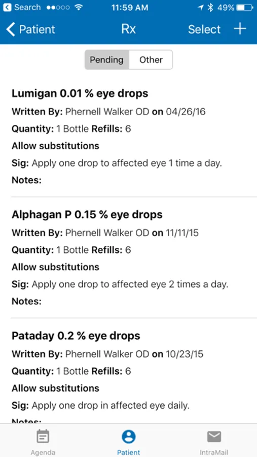 The Eyefinity EHR iPhone app complements the Eyefinity EHR iPad app by giving you secure access to your most vital patient information while on the go.