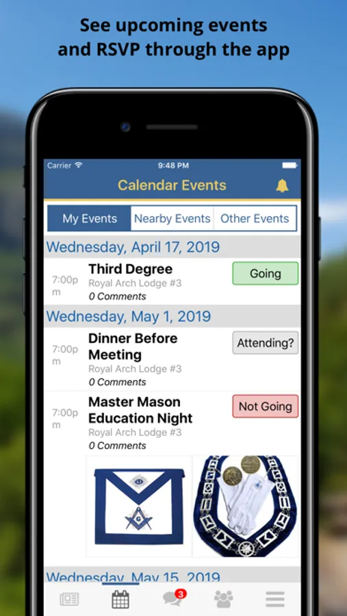 • See upcoming events for all of your lodges, nearby lodges and jurisdiction.