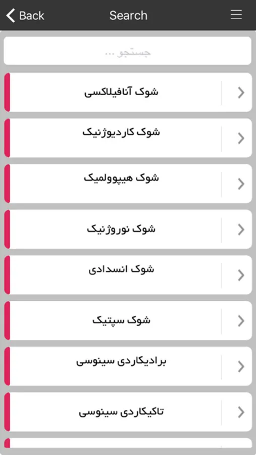 این اپلیکیشن شامل امکاناتی از قبیل علاقه مندی و جستجوی قوی فارسی نام بیماری ها می باشد