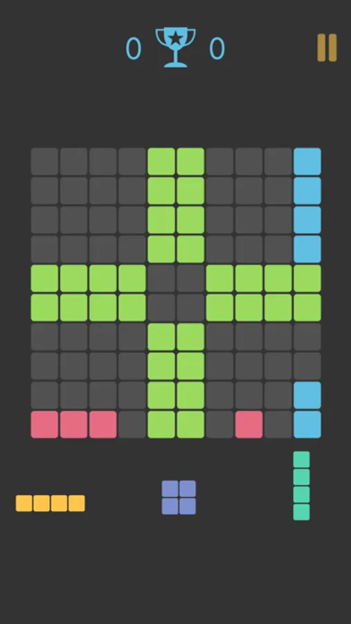 - Drag and drop the random blocks into the 10x10 board.