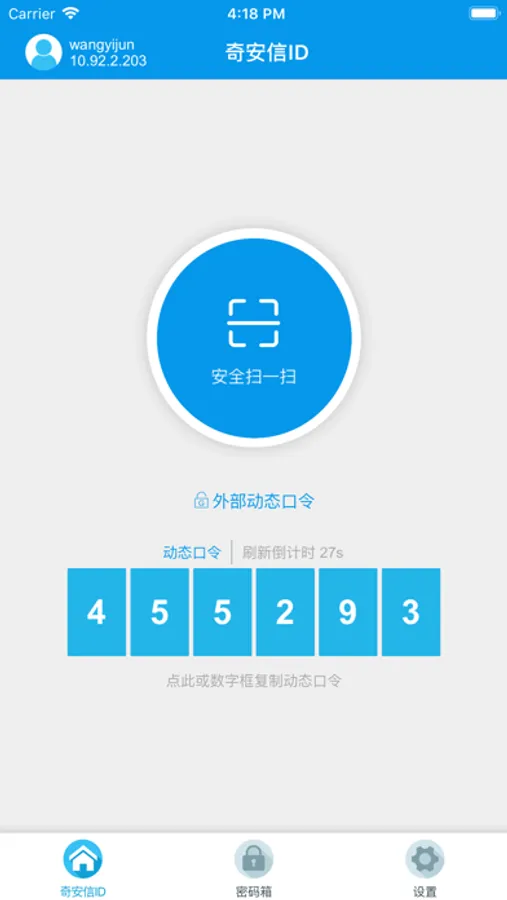 获取动态口令和扫码授权。用于企业客户业务系统单点登录和扫码授权。
