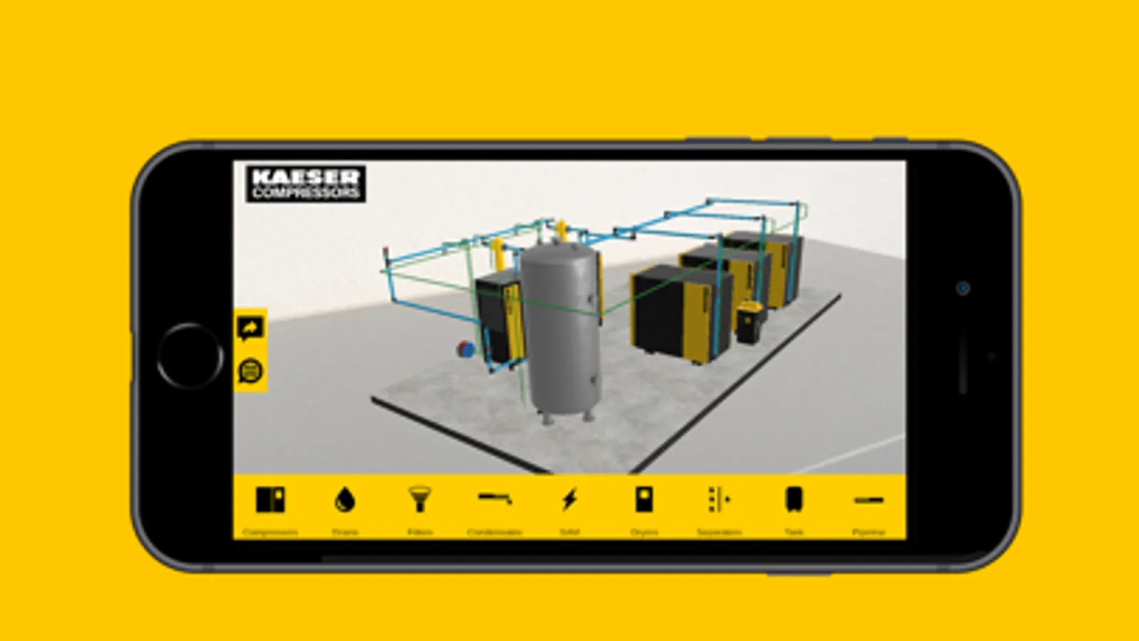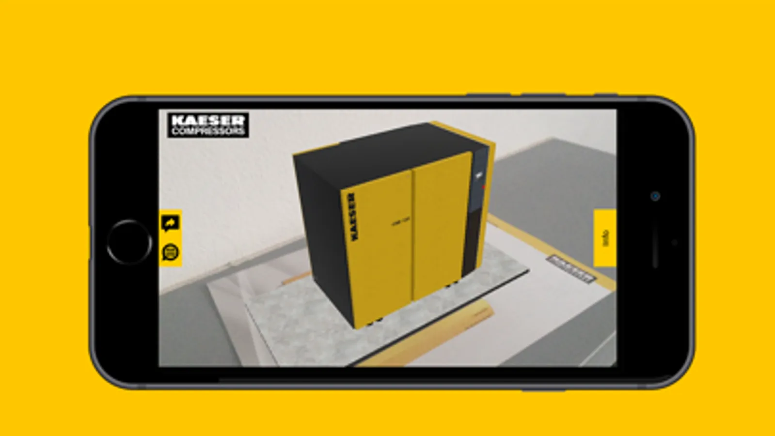 Allow you to visualize a KAESER air compression station in 3D with augmented reality. Inside you can get more information about the products that compose the station.