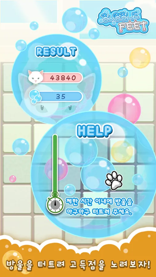 -정해진 시간 내에 화면에 두둥실 떠오르는 방울들을 발가락을 이용해 많이 터트리면 되는 캐주얼 게임 입니다.