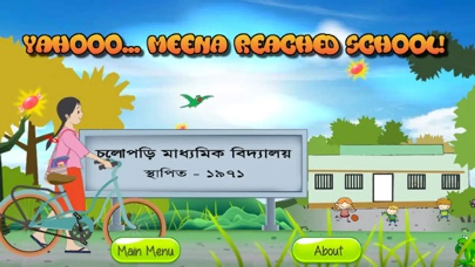 We all know Meena. Motivator for girls child in South Asia. In Meena’s adventure game she ride her little bicycle and goes towards school by avoiding obstrucle on the road with help of her parrot named “Mithu”.