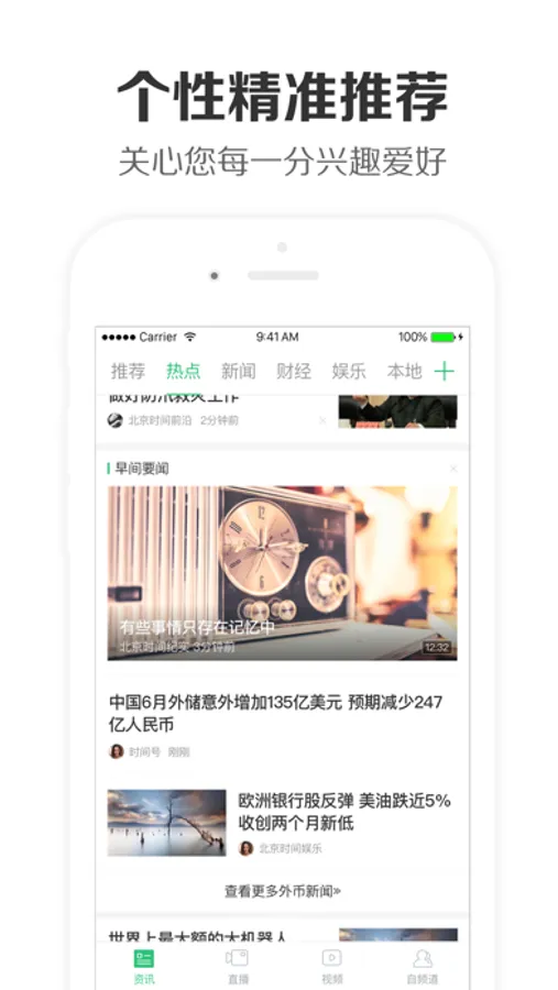 360新闻客户端是360新闻团队倾力打造的一款基于热门及兴趣推荐的资讯阅读客户端,海量热门头条、新鲜事、视频直播,精彩资讯抢先看!