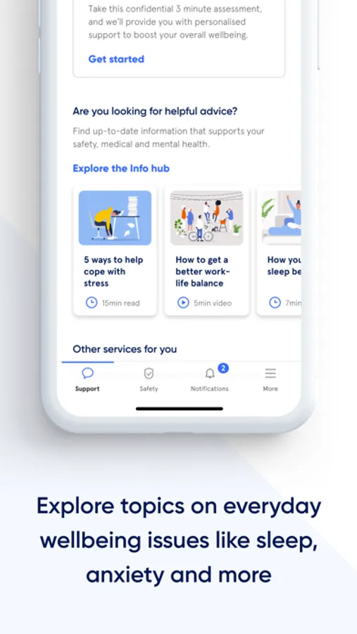 Clinically-backed self-assessments across the wellbeing spectrum of mental, social and physical health.