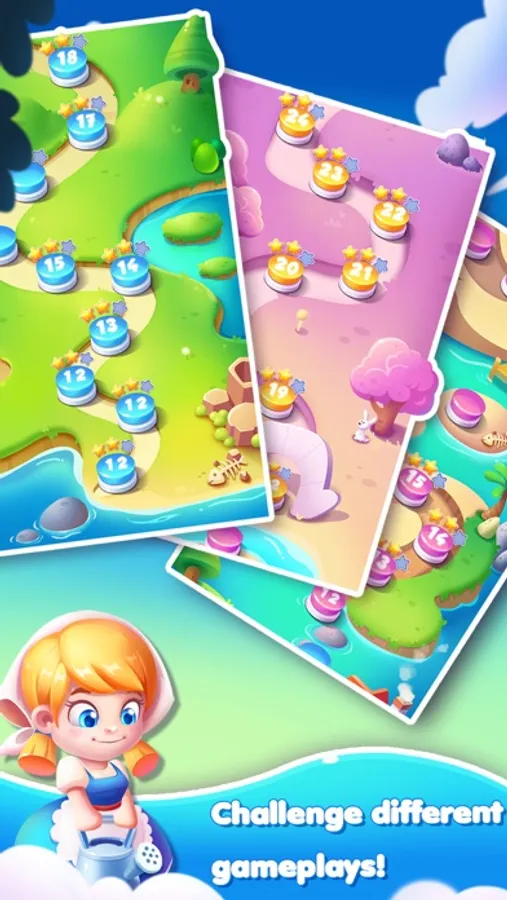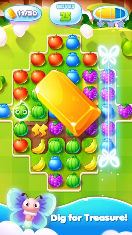 * Variety of gameplay types, water the flowers, dig out the golds, by splashing the fruits on them!