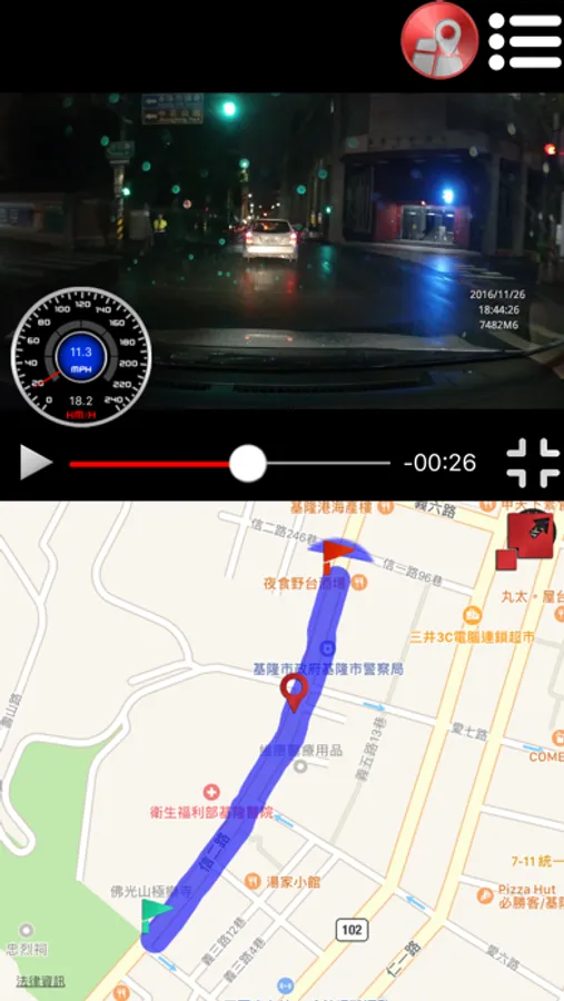 3) Video & tracking playback.