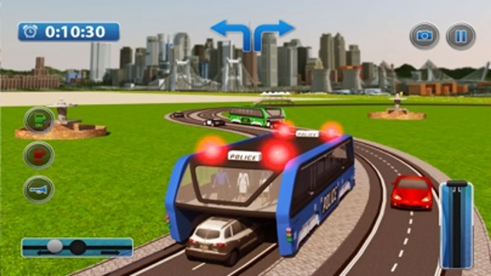 Hop into futuristic police bus and transport criminals to secure prison cell with inmates. Move with high security police protocol and drive the latest transit elevated bus above traffic rush. Prisoner transport is risky job with police cars and gunman security officers. Play unique role of police bus driver and control giant straddle autobus to transfer criminal scum. Pick up police duty officers and agents from bus stops and drop them at destinations across cities in huge open world. Public transport is not your concern but to ensure prisoner transportation safely. Use chinese invention to facilitate new york police department for law enforcement. Passengers are not ordinary citizens but special operative agents.