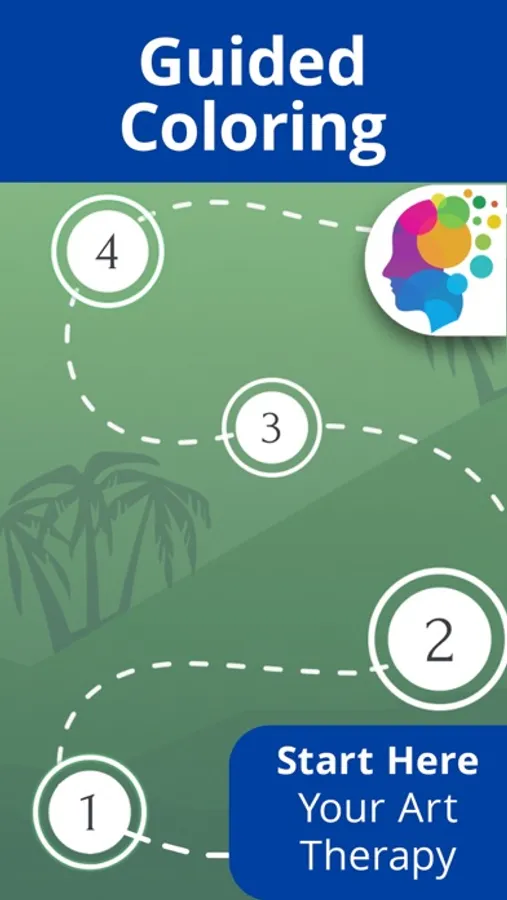 – GUIDED COLORING. Follow the step-by-step art therapeutic journey, depending on your goals – feel sky-high or beat anxiety.