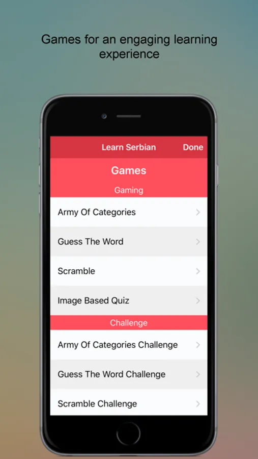 Speak Serbian app with more than 2000 words in 55 categories like Food, Clothes, Numbers, Travel, Emergency, Health etc. is here to support you in Serbian Language Learning. Our visual senses help us recall things easily, so this Learn Serbian app is full of word images and audios for SMART learning. To be more interactive, this Learn Serbian app contains different types of games.