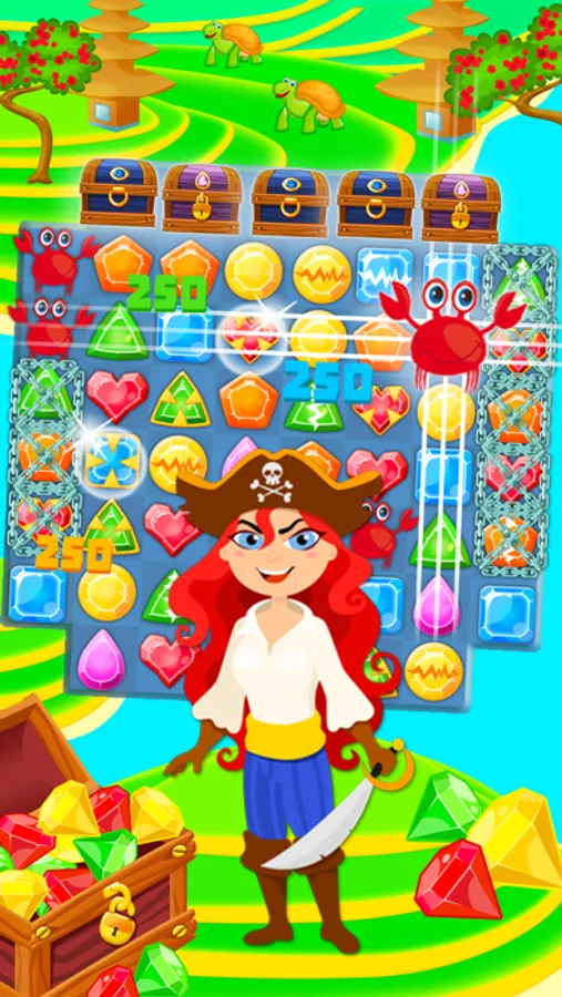 During all your adventures you will have an opponent. Her name is pirate the Green eye. She will compete with you to become the famous pirate in the world. You should find the treasures faster than your opponent, to become the most famous hunter.