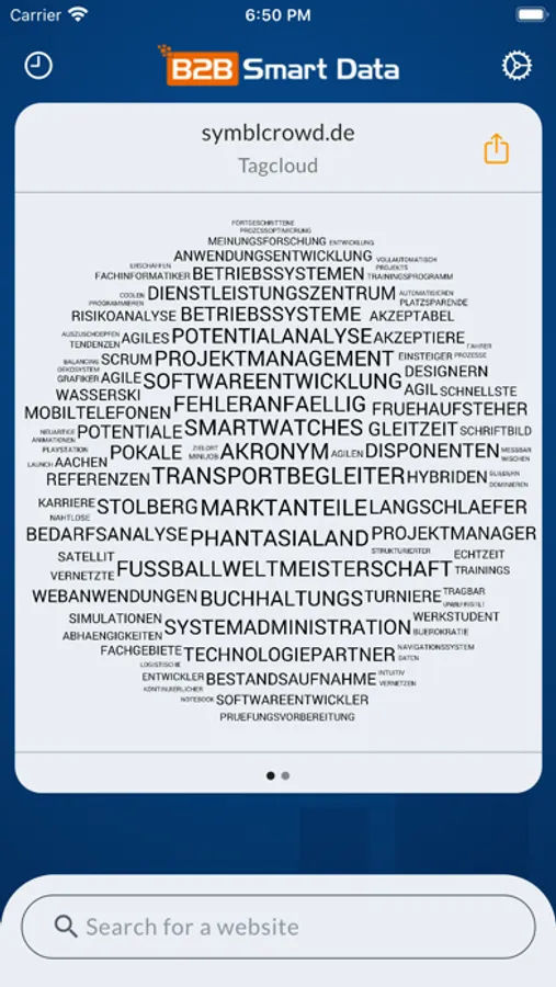 The B2B Web Profiler app of B2B Smart Data enables to visualize the keywords of the internet presence of any company.