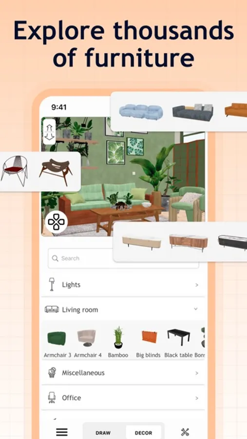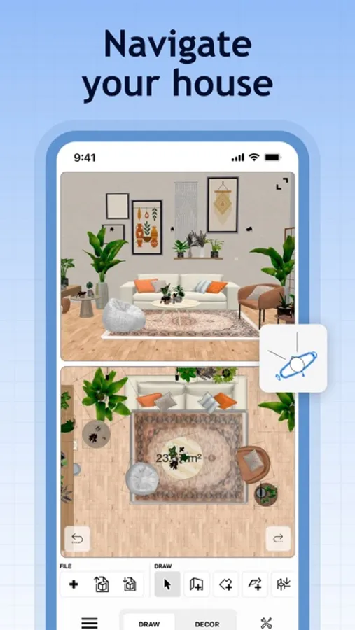 - Navigate a user-friendly interface: Place furniture and design elements with simple drag-and-drop functionality, making it easy to navigate and customize