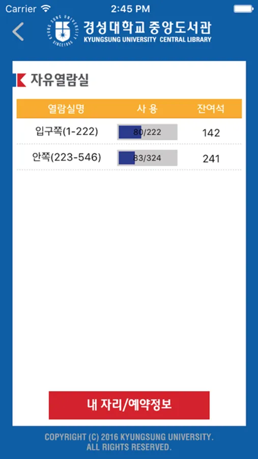 - 도서관 자율학습시설 별 좌석 이용 현황 확인