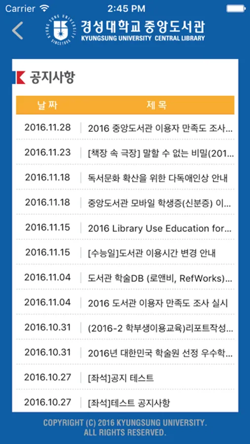 경성대학교 도서관 이용자들의 이용 편의를 위하여 제작한 어플리케이션으로 아래와 같은 서비스를 제공합니다.