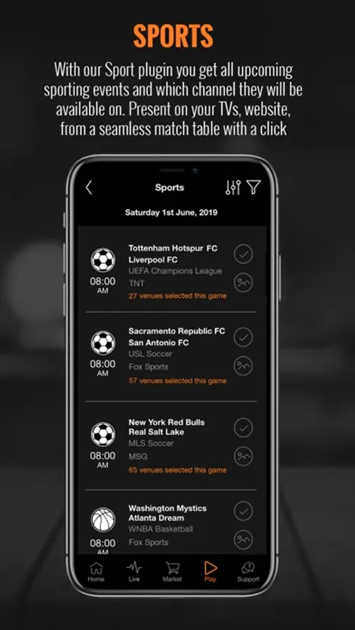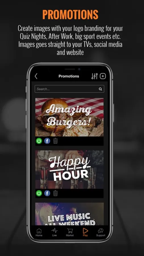 - Promote the sports events you are showing to your TV screens, Facebook page or website