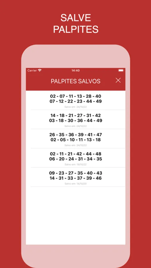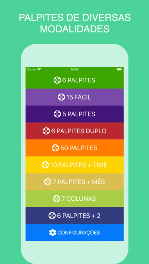 Ficar pensando em números para apostar é bem chato, né? Então o aplicativo gera pra você os números da sorte de forma fácil e divertida.