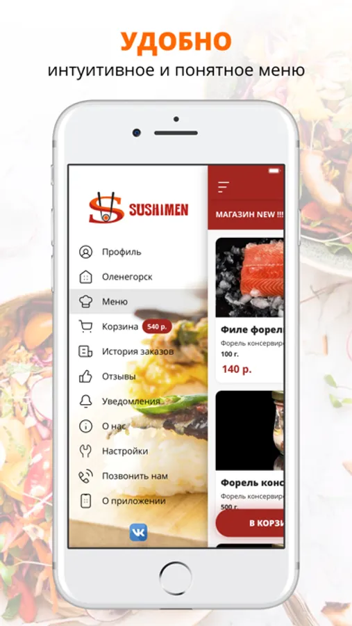 Выбирайте доставку SUSHIMEN. С нашим приложением теперь так просто заказать вкусную еду на дом!