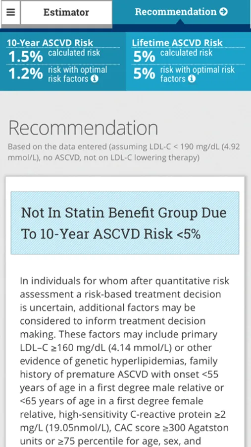 -ASCVD Risk Estimator: Calculate pretreatment ASCVD risk and determine the appropriateness of statin therapy for the patient