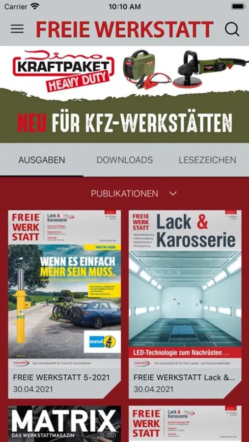 Exklusiv für Führungskräfte des freien Reparaturmarkts informiert seit 25 Jahren unsere Wirtschaftsredaktion unter Leitung der Chefredakteurin Claudia Pfleging unabhängig, konstruktiv und kritisch aus und über den freien Pkw-Reparaturmarkt in Deutschland. Inhalte der Ausgaben sind u.a. Produktvorstellungen, Spezialwerkzeuge, Marketing- und Kundengewinnungsaktionen, Techniktipps und Portraits erfolgreicher Unternehmer/innen.