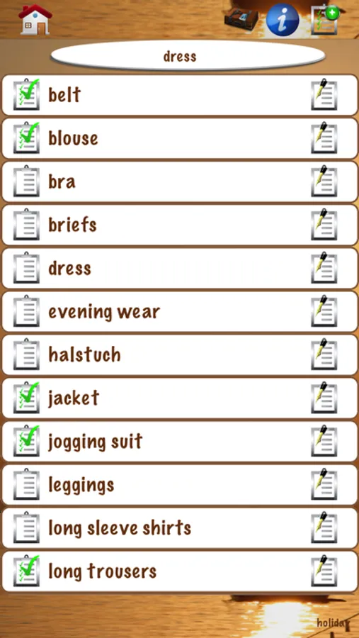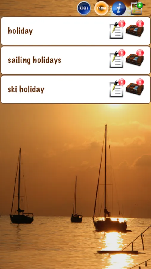 Create different pack lists, e.g. Skiing holiday, sailing holiday or vacation in the apartment. Each list is customizable.