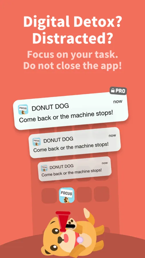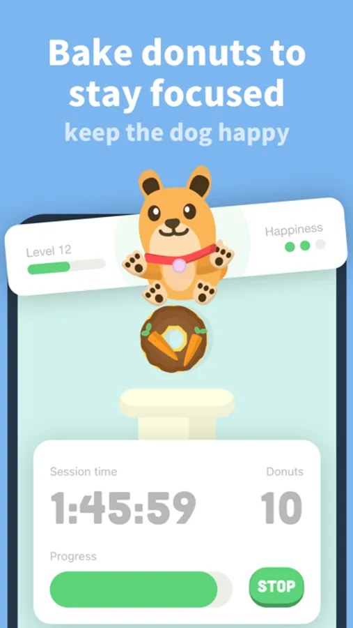 2) Build the habit of responsible phone usage by feeding your virtual dog named Focus with donuts. Earn coins and XP for each feeding.