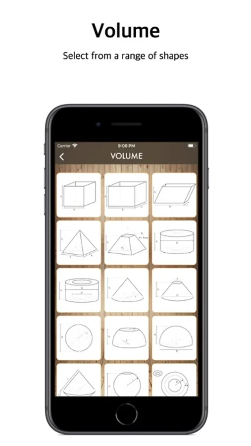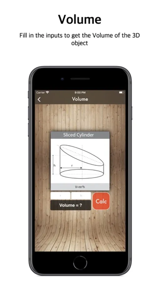 Cube, Cuboid, Parallelepiped, Pyramid, Frustum of pyramid, Cylinder, Hollow cylinder, Cone, Frustum of a cone, Sphere, Zone of a sphere, Segment of a sphere, Sector of a sphere, sphere with cylinder, spherical sector, Sliced Cylinder, Unglue, Barrel