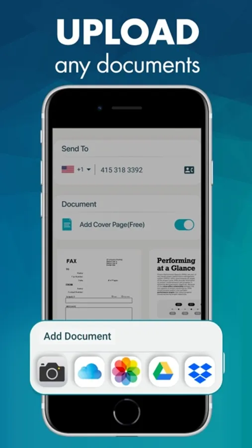Scan any documents with Easy Fax's advanced built-in scanner or add images from your camera roll and fax them anywhere with a few taps. You can also choose documents from your favorite cloud services, iCloud, Google Drive or Dropbox for faxing.
